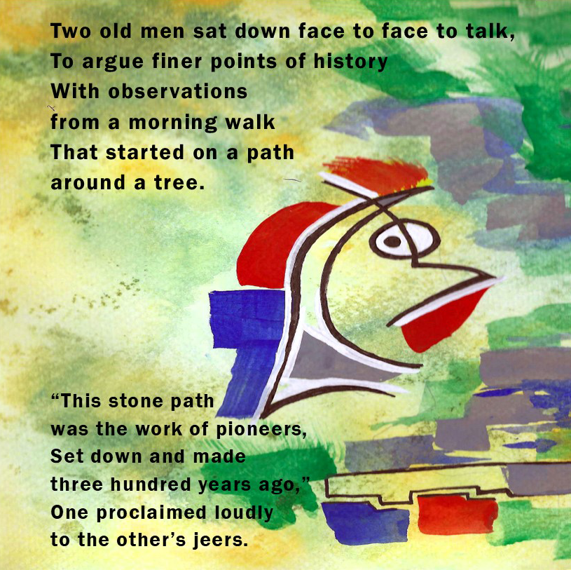 Today’s poem, “Two Old Men” is part of a new direction for Dave. As he himself describes it, “I’ve always been intrigued by the idea of combining words and images, so this project represents a sort of visual poetry. The theme of the work comes first, and then the poetry and artwork are created pretty much simultaneously until the piece is finished.” In support of this project, Dave has received a grant from ArtsWestchester with funding from the NYS Council on the Arts. Dave welcomes your comments and feedback on this poem or any of his previous pieces on agebuzz. Please feel free to reach out to him at [email protected].