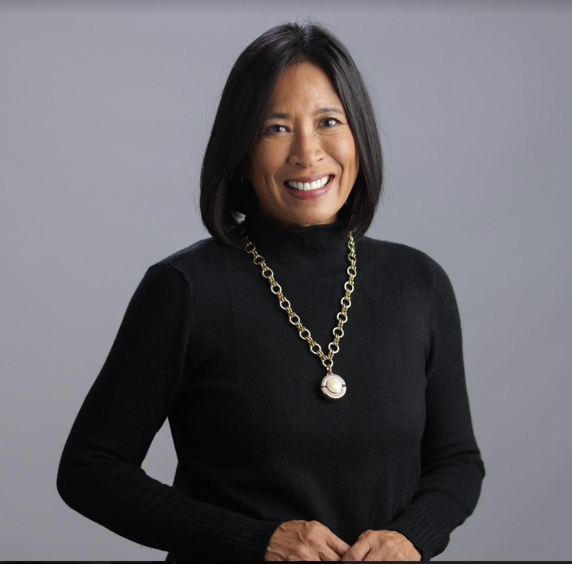 MP: Currently, the Trelawear collection features 2 best-selling shapes (cushion and round) of 30″ pendants offered in 2 metal finishes (12k micron gold plating or rhodium-like slightly antiqued silvertone plating). Each model is available with 5 hand-cut faceted resin stones (opaque black, lapis blue, turquoise blue, white mother of pearl, or tanzanite purple). Both styles come with an exclusive magnetic closure and with an easy-to-remove bale that allows you to also wear the pendant with your favorite pearl, bead, or own chain necklace. Trelawear also can be attached to your favorite belt, handbag, or sports bag! The pendants and chain necklaces are made of 100% brass and are of beautiful quality. They are nickel-safe and 100% hypoallergenic. They do have some weight, but for regular use, this has not been an issue for most women. In the future, we will be adding bracelets, belts, and eyewear to offer a complete range of accessories that provide safety with style.